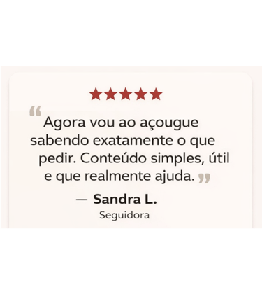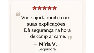 Ao perceber que a maioria das pessoas compra carne sem conhecimento, insegura e muitas vezes pagando caro por cortes errados, Fábio criou o Guia da Carne Certa: um método prático, simples e acessível que ensina qualquer pessoa a escolher a carne certa, evitar armadilhas e garantir mais sabor, maciez e qualidade no dia a dia.