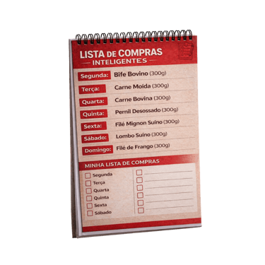 É o guia prático que te orienta antes de ir ao açougue, mostrando exatamente o que comprar, quanto comprar e para qual momento da semana.